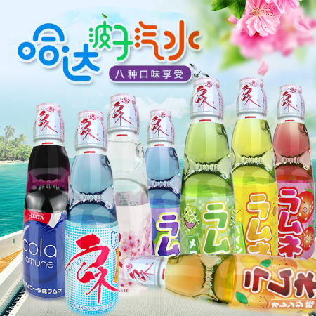波子汽水日本进口哈达hata波子汽水弹珠网红款玻璃瓶汽水整箱30瓶