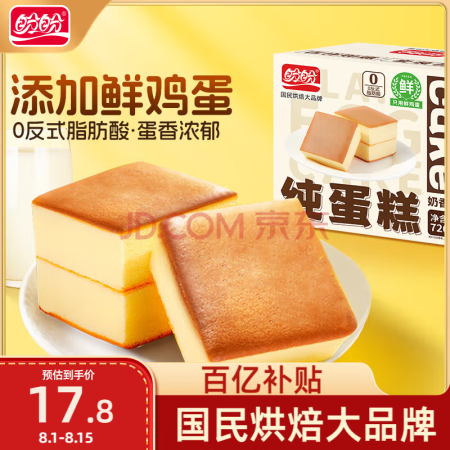 盼盼 纯蛋糕 西式糕点营养鸡蛋糕早餐零食糕点点心小吃 720g/箱