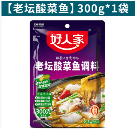 好人家老坛酸菜鱼调料350g四川微辣家用靓汤酸菜鱼水煮鱼火锅底料 【老坛酸菜鱼】300g*1袋