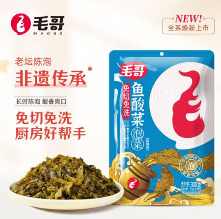 毛哥免切鱼酸菜调料300g重庆美食传统乳酸发酵免切免清洗酸菜包3袋装 免切鱼酸菜300克*3包