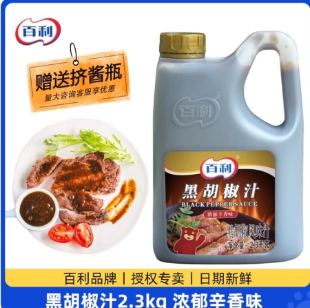 百利黑胡椒汁家用2.3kg黑胡椒酱牛柳意大利面烤肉拌饭牛排酱商用