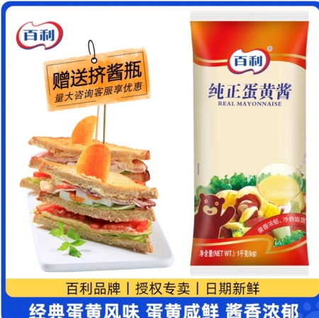 百利蛋黄酱1kg 沙拉酱色拉酱水果蔬菜沙拉寿司三明治汉堡涂抹酱料
