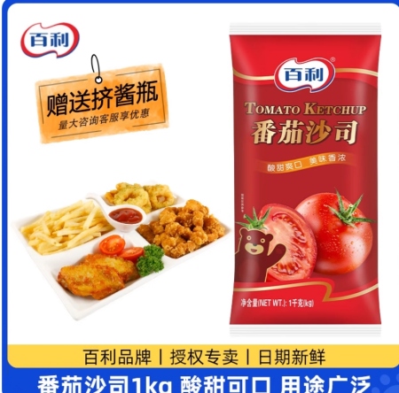 百利番茄沙司1kg 番茄酱意大利面酱披萨汉堡寿司薯条蘸酱烹饪酱料