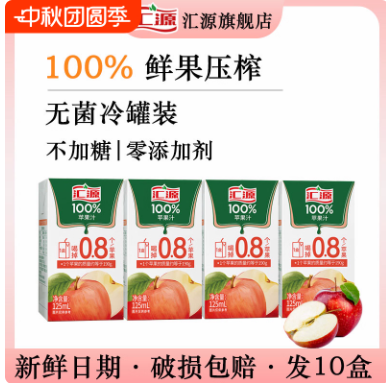 汇源100%苹果汁125ml*10盒装鲜果浓缩小盒果汁正品R6盒桃汁水果