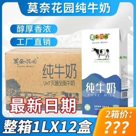 莫奈花园早餐烘焙纯牛奶全脂12瓶*1L整箱