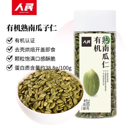 人民食品有机熟南瓜子原味即食炒熟南瓜籽仁烘焙炒货坚果