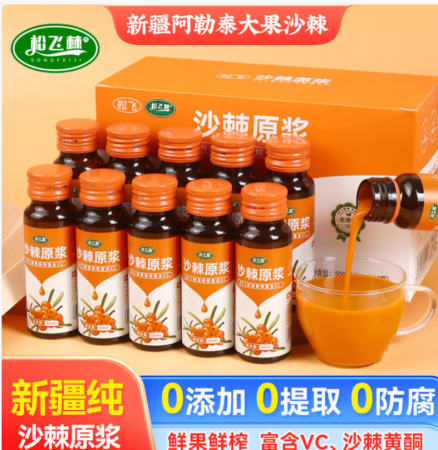 松飞棘沙棘原浆500ml/盒 新疆阿勒泰大果沙棘原浆原汁官方 纯果浆沙棘汁 沙棘原浆2盒(20瓶)-送试吃1瓶+