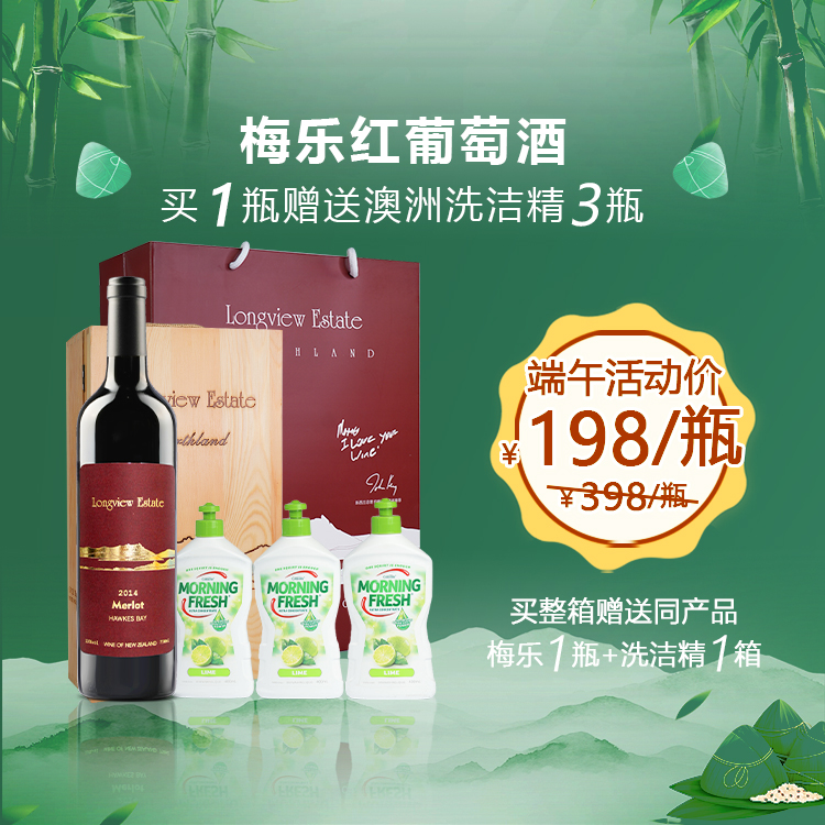 【粽情端午】新西兰原装进口红酒远景园酒庄霍克湾梅乐干红葡萄酒单支装750ml